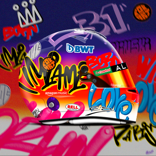 ESTEBAN OCON X RICHARD ORLINSKI 1:2 SCALE 2025 MIAMI GP MINI HELMET